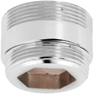 Redukcja gwintowana - wysoka. Obydwa gwinty są zewnętrzne o wymiarach M24 x M22. Redukcja znajdzie zastosowanie przy instalacji aeratorów i perlatorów na wylewce baterii, ułatwiając ich dopasowanie. Całkowita wysokość redukcji 17 mm. Wysokości gwintów po obu stronach nypla po 5 mm.