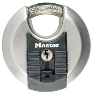MASTER LOCK Kłódka tarczowa o dużej wytrzymałości, poziom bezpieczeństwa 8/10, na zewnątrz, z kluczem, stal nierdzewna, odporna na warunki atmosferyczne, zamknięta szekla