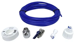Zestaw doprowadzenia wody urządzeń AGD takich jak: lodówka, kostkarka lodu, dystrybutor wody, ekspresu do kawy, zastawów filtrów, akwarystyki, jak i wykorzystywany do domowej produkcji cieszy; soki, piwo, wino. W skład zestawu wchodzą elementy takie jak; wężyk przyłączeniowy z PE średnicy 1/4" i długości 5 m. b. ; zawór kulowy z gwintami GZ, GW1/4"; złączka redukcyjna chromowana z gwintami GZ, GW 3/8" - oraz otworem do montażu zaworu kulowego 1/4", złączka plastikowa wężyka 1/4" z zawleczkami; opcjonalnie adapter plastikowy z gwintami 3/4" x 1/4" do podłączenia się z zaworem . W zestawie znajduje się taśma teflonowa.