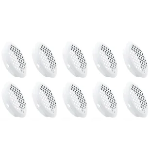 Specyfikacja: 10 osłon wentylacyjnych w opakowaniu, średnica górna: 65 mm, średnica dolna: 53 mm. Gładka powierzchnia z naturalnie zaokrąglonymi krawędziami.