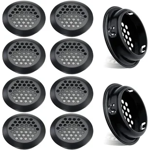Otwór wentylacyjny o średnicy podstawy 53 mm (2,1 cala) i średnicy zewnętrznej 65 mm (2,4 cala). Otwory wentylacyjne ze stali nierdzewnej są wykonane z wytrzymałej stali nierdzewnej (czarnej). Łatwy montaż: otwórz zakładkę i wciśnij kratkę na miejsce. Oddychająca siatka redukuje zapachy w szafie, zapobiega przedostawaniu się ciał obcych i chroni przedmioty.