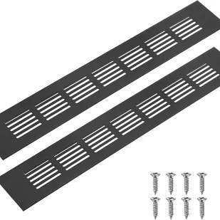 [Wymiary i opakowanie] - 2 kratki wentylacyjne do szafek (w zestawie 4 śruby mocujące); Kolor: czarny; Wymiary całkowite: 300 mm x 50 mm (dł. x szer.).