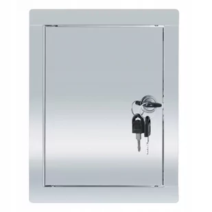 DRZWICZKI REWIZYJNE METALOWE ZAMEK 40x50 Dane techniczne: Rozmiary montażowe: 397 mm x 497 mm Materiał: stal nierdzewna Zamykane na zamek Kolor: srebrny Wysokiej jakości drzwiczki rewizyjne wykonane ze stali nierdzewnej.