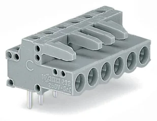 Złącze żeńskie WAGO THT; kątowe; skok 5 mm; szare 232-234
