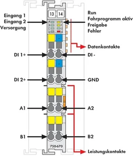 Dane techniczne: Długość produktu: 100 mm $849 Elementy PLC: Sterownik silnika krokowego PLC $850 Interfejsy (Systemy magistrali): RS 422, Klemmen $851 Maksymalna liczba wejść: 2 $852 Maksymalna temperatura otoczenia: +55 °C $853 Minimalna temperatura otoczenia: 0 °C $854 Napięcie robocze: 24 V/DC $855 Numer części producenta: 750-670 $856 Rodzaj (typ producenta): 750-670 $857 Stopień ochrony IP: IP20 $858 Szerokość produktu: 51 mm $859 Waga: 49.