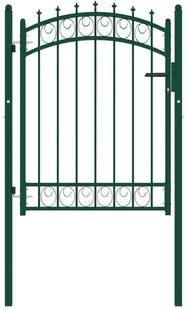 Wykonana z wytrzymałej stali furtka ogrodzeniowa ma solidną konstrukcję i została pomalowana proszkowo w celu zabezpieczenia przed korozją. Dzięki pionowym prętom z grotami i mocnym, poziomym prętom wzmacniającym zapewnia ona wysoki stopień bezpieczeństwa. Wykończenie w formie łuku dodaje jej elegancji. Wyposażono ją w dwa solidne słupki i trwałe zawiasy dla ułatwienia montażu. W zestawie znajduje się również zamek z trzema pasującymi kluczami.