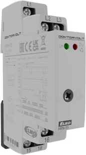 Przekaźnik nadzorczy napięcia w 3F z regulowanym poziomem przekaźnik nadzoruje kolejność i zanik fazy, przekroczenie progu nadzorowanego napięcia, przekaźnik przeznaczony do nadzoru sieci 3-fazowych, HRN-55: zasilanie ze wszystkich faz, tzn. że przy zaniku jednej z faz działanie przekaźnika zostaje zachowane, stałe opóźnienie T1 (500 ms) ustawialne opóźnienie T2 (0.1 - 10 s), Dane techniczne: Zasilanie - - zaciski nadzorcze L1, L2, L3, - - zaciski zasilania L1, L2, L3, - - napięcie zasilania i nadzorowane Un 3x 400V (50 - 60 Hz), - - pobór mocy (max.