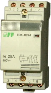 Styczniki elektromagnetyczne w obudowach modułowych do bezpośredniego montażu na szynie 35mm. Podanie napięcia zasilania na cewkę stycznika spowoduje przełączenie styku. Stan załączenia stycznika jest sygnalizowany czerwonym znacznikiem w okienku. Po zaniku napięcia zasilania styki powracają do pierwotnej pozycji.
