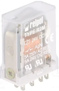 Przekaźnik elektromagnetyczny przemysłowy przeznaczony do gniazda wtykowego. Przekaźnik posiada 2 styki przełączne. Do przekaźnika należy dobrać odpowiednie gniazdo wtykowe oraz obejmę, aby uzyskać pełny zestaw. Gniazdo wtykowe umożliwia montaż na szynie montażowej lub płycie.