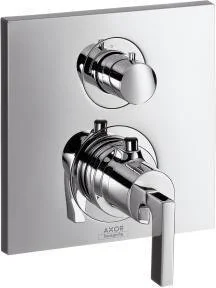 AXOR CITTERIO - BATERIA TERMOSTATYCZNA Z ZAWOREM ODCINAJĄCYM, Z UCHWYTEM 1-RAMIENNYM - 39700000Axor Citterio to kolekcja armatury sanitarnej w nowoczesnej odsłonie, której jednym z produktów jest bateria termostatyczna z zaworem odcinającym i z uchwytem 1-ramiennym. Bateria umożliwia prostą i szybką regulację temperatury oraz przepływu wody. Posiada też specjalny system chroniący przed wypływem zbyt gorącego strumienia, który włącza się przy temperaturze 40°C. Wszystkie techniczne części baterii ukryte w ścianie nie rzucają się w oczy, co sprawia, że łazienka zyskuje więcej przestrzeni i swobody aranżacyjnej.