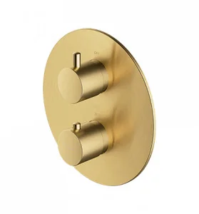 Termostatyczna bateria prysznicowo-wannowa podtynkowa, element natynkowy złoty szczotkowany