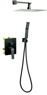 OPIS PRODUKTU Bateria prysznicowa VERDO podtynkowa z deszczownicą 25 cm Czarna CECHY PRODUKTU Kolor : czarny Gwarancja : 2 lata Klasa Akustyczna: A Klasa Przepływu: C,B Zgodność z Normą: