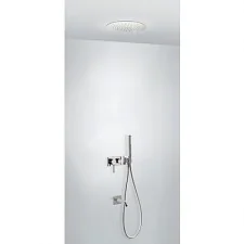3V jednouchwytowa bateria wannowo-natryskowa podtynkowa Jednouchwytowa bateria podtynkowa 3V; - W zestawie z korpusem podtynkowym (trójdrożna). -Natrysk sufitowyze stali nierdzewnej śr. 380 mm. (1.34.940).