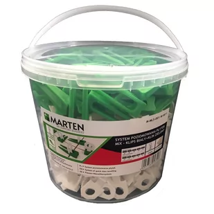 System poziomowania MIX: klipsy białe 1mm 300 szt. + kliny zielone 100 szt.