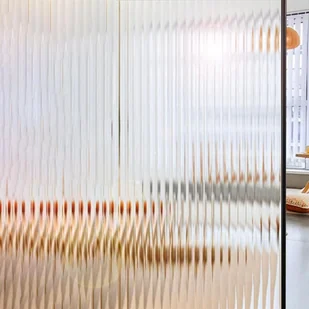 Ochrona prywatności:Ta folia szklana charakteryzuje się półprzezroczystą, matową fakturą z pionowymi paskami, które skutecznie blokują wścibskie spojrzenia, jednocześnie przepuszczając naturalne światło. Idealnie nadaje się do łazienek, okien wychodzących na ulicę lub ścianek działowych w biurach.