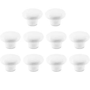 - Opakowanie zawiera 10 białych gałek, każda o wymiarach 32 x 32 x 22 mm.