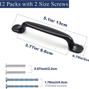 【Zestaw uchwytów kuchennych】: Opakowanie zawiera 12 uchwytów do szuflad kuchennych. Mają one 130 mm długości, 30 mm wysokości i rozstaw otworów 96 mm. Dwie śruby mają długość 25 mm i 40 mm.