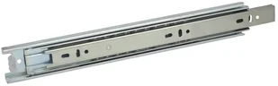 Jest przeznaczona do montażu w meblach, gdzie umożliwia płynne wysuwanie szuflad, półek i podobnych elementów zabudowy. Konstrukcja prowadnicy przy pełnym wysuwie uniemożliwia wypadnięcie szuflady lub półki po pełnym otwarciu. Wymiar 45x350mm. Prowadnica z pełnym wysuwem.