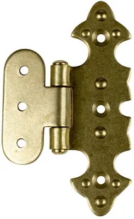 Zawias ozdobny do drzwiczek meblowych w kolorze mosiądz. Wykonany jest z materiału najwyższej jakości, dzięki czemu na długi czas zachowuje swoje właściwości. Pasuje do wielu różnych mebli, doskonale sprawdza się zarówno podczas samodzielnego ich tworzenia, jak i renowacji. Zawias jest prosty w montażu.
