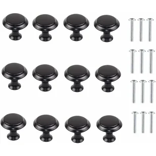 Bezpieczeństwo: Powierzchnia jest gładka i pozbawiona krawędzi i narożników, dzięki czemu jest bardzo bezpieczna dla dzieci i nadaje się do stosowania w szafkach, szufladach, szafkach, koszach na śmieci, komodach, szafach, pokojach dziecięcych itp. Uchwyty do szuflad, 12 sztuk matowych czarnych uchwytów do szafek, okrągłe uchwyty do szuflad w kształcie grzybka, stop aluminium 27 mm, okrągłe uchwyty do drzwi kuchennych, uchwyty do drzwi szuflad, okucia meblowe ze śrubami.