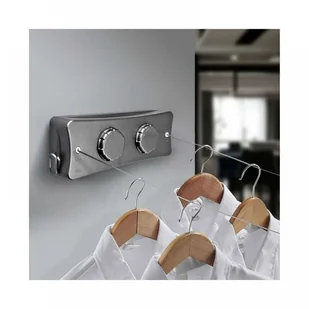 Łatwość użytkowania – rozsuwana, montowana na ścianie linka do suszenia prania jest prosta i mocowana do ściany. Rozciąga się do żądanej długości i mocuje się ją na drugim końcu za pomocą szydełka z przodu. Ręczne pokrętło do wciągania pozwala na idealne dopasowanie wieszaka na ubrania, zapobiegając jego przesuwaniu.
