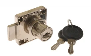 Zamek kwadratowy, niklowany X-850 od SISO na klucz łamany. Blaszka zaczepowa nie jest w zestawie. W naszym sklepie dostępne są blaszki proste lub kątowe. Idealnie nadaje się do szaf, szafek, biurka. Komplet zawiera:
