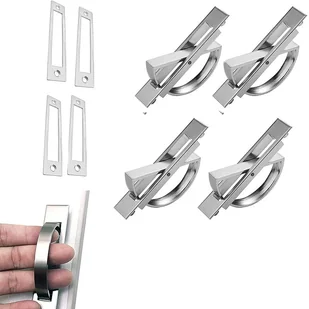 【Materiał】 Stop cynku, odporny na rdzę i korozję oraz zapewniający długą żywotność. Matowe wykończenie, elegancki szczotkowany metal z metalicznym połyskiem, pasuje do każdego stylu aranżacji wnętrz. Wpuszczane klamki idealnie nadają się do drzwi przesuwnych i jako uchwyty do drzwi w kuchni.