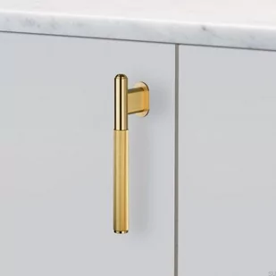 OPIS PRODUKTU : L-Bar wykonany z mosiądzu. Ma charakterystyczny, diamentowy, liniowy wzór radełkowany, precyzyjnie frezowany owalny trzon. Jest wyposażony w mały owalny mosiężny dysk. Uchwyt jest woskowany, co zabezpiecza go przed procesem patynowania, ale go nie wyklucza.