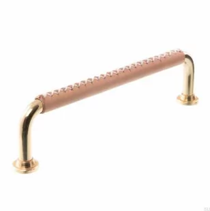 Uchwyt meblowy podłużny 1353 128 Mosiężny Polerowany ze Skórą