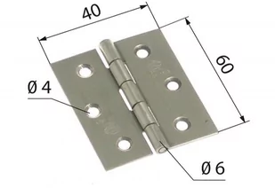 Zawias meblowy splatany 2002 stal nierdzewna Wymiary po rozłożeniu: - wysokość - 60 mm - szerokość - 40 mm - szerokość skrzydła - 17 mm - grubość - 2 mm - Średnica zewnętrzna trzpienia - 6 mm