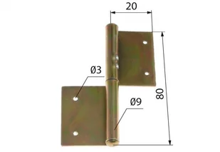 Zawiasa czopowa okienna lewa kolor: ocynk Wymiary po rozłożeniu: - wysokość - 80 mm - szerokość - 40 mm - szerokość skrzydła - 15 mm - średnica zewnętrzna trzpienia - 9 mm