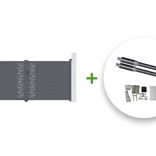 Ten zestaw bram z napędem zawiera:Brama skrzydłowa designerska ARLBERG w kolorze szarymSzerokość 350 cm, wysokość 161 cmSilnik siłownika (do 300kg)Casanoov specjalizuje się w bramach i furtkach KIT do samodzielnego montażu i samod