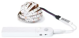 Komplet taśma LED RGB charakteryzująca się wysokimi parametrami i trwałością wraz z wielofunkcyjnym sterownikiem z czujnikiem ruchu, z możliwością zasilania przez baterie AAA.