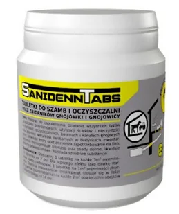 Sanidenn Tabs to preparat do szamba i przydomowych oczyszczalni w łatwych w użyciu tabletkach. Preparat jest znany i ceniony ze swej skutecznościu w usprawnieniu działania wszystkich typów oczyszczalni przydomowych, utylizacji ścieków i nieczystości w szambach, oczyszczalniach, basenach i kanałach gnojowych oraz poprawy warunków sanitarnych w budynkach inwentarskich.
