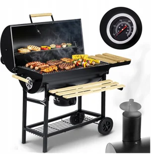 Grill węglowy ogrodowy Berdsen z półkami beczka z kominem + termometr + popielnik