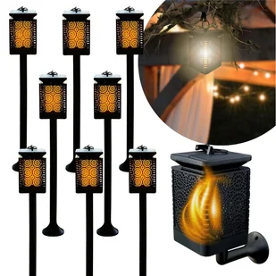 8x Lampa Solarna 3w1 Ogrodowa LED, Lampion, Pochodnia Efekt Płomienia Latarnia BLIXTAR