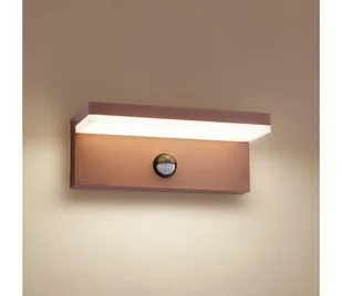 Zewnętrzna oprawa ścienna z czujnikiem ruchu PIR. Zasięg czujnika: 6-8 m. Natężenie światła do aktywacji czujnika: < 2000 lux.