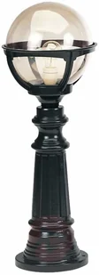Ta atrakcyjnie wyglądająca lampa posiada wyraźne cechy klasyczne: przezroczysta szklana kulka doskonale harmonizuje z ciemnym metalowym korpusem. Dekoracyjnie uformowany metal podkreśla gustowny charakter tej lampy. Szklany klosz zapewnia właściwy i przyjemny efekt oświetleniowy. Nawet po wyłączeniu jest ozdobą każdego miejsca na zewnątrz budynku.