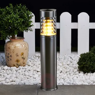 Kształt rurki i srebrna powierzchnia ze stali szlachetnej nadają tej lampie na cokół Enja przyjemny nowoczesny wygląd. W górnej części znajduje się wkład oświetleniowy z poliwęglanu. Można stosować żarówki energooszczędne z oprawką E27 do maksymalnie 15 W, a dzięki lamelom, które znajdują się poniżej tego przezroczystego elementu z poliwęglanu, zredukowano oślepianie tego oświetlenia do minimum, tak że emitowane światło jest odczuwane jako bardzo przyjemne. Ozdobne źródło światła do przestrzeni zewnętrznej!