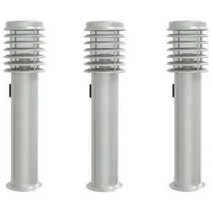 Lampy ogrodowe na słupku, z gniazdkiem, 3 szt., srebrne, 60 cm