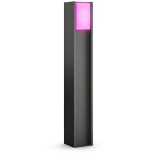 Lampa ogrodowa marki Philips Hue, która oferuje regulowane białe i kolorowe światło. Smukła, nowoczesna forma zapewnia rozproszone światło użytkowe, ułatwiające poruszanie się po ogrodzie, a także pozwala tworzyć dekoracyjne akcenty przy wejściu lub na tarasie.