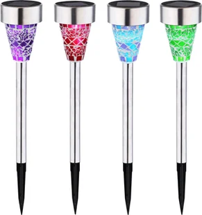 Zestaw 4 zewnętrznych lampek solarnych, 10 diod LED, wodoodporność IP65, idealne do ogrodu, na patio, do krzewów i dekoracji (wielokolorowe)
