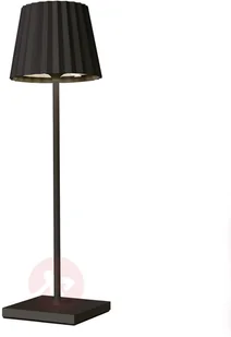 Solidna lampa stołowa Troll 2. 0 do zastosowań zewnętrznych Troll 2. 0 oferuje przyjazny, lekki akcent na taras i do ogrodu. Oprawa wykonana jest z aluminium i składa się z kwadratowej podstawy, smukłej podstawy i stożkowego cylindrycznego klosza z plisowanym wzorem. Diody LED, które można bezstopniowo regulować za pomocą zintegrowanego ściemniacza, są zasilane przez akumulator.