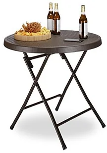 Relaxdays Stół ogrodowy Stół składany BASTIAN, okrągły, wys. x szer. x głęb.): 74 x 80 x 80 cm, metal, tworzywo sztuczne, wygląd la ratan, brązowy 10020057_643