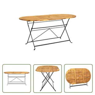 Po opadach deszczu lub śniegu wytrzyj i osusz nadmiar wody lub śniegu z płaskich powierzchni. Zapewnić odpowiednią cyrkulację powietrza, aby zapobiec uszkodzeniom spowodowanym wilgocią. Materiał: lite drewno akacjowe, stalWymiary: 160 x 85 x 74 cm (dł. x szer. x wys.)Składana konstrukcja