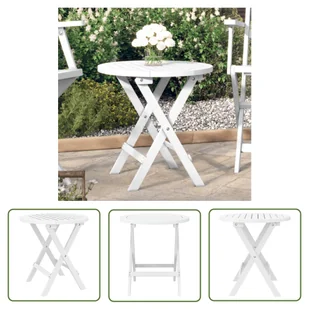 Stabilny blat stołu tarasowego oferuje idealne miejsce na napoje lub inne przedmioty, które chcesz mieć pod ręką. Uwaga: Aby meble ogrodowe wyglądały dobrze przez długi czas, zalecamy zabezpieczenie ich wodoodpornym pokrowcem. Materiał: lite drewno akacjowe, malowane na białoWymiary: 46 x 47 cm (średnica x wys.)Wymagany montaż: Tak