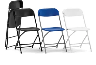 Plastik jest trwały, łatwy w czyszczeniu, składane krzesło jest doskonałym roziązaniem na stołówkach. Z zestawem składanych mebli możesz prosto i szybko stworzyć tymczasowy układ, którego potrzebujesz. Dla ułatwienia transportu i przechowywania, można użyć wózka do krzeseł, dostępnego jako dodatkowe wyposażenie.