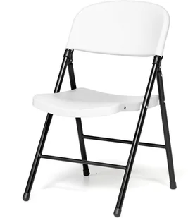 Krzesło składane Paisley, tworzywo sztuczne, biały, czarny. Składane krzesło z czarną metalową ramą, plastikowym siedziskiem i oparciem. PraktyczneSkładana ramaOszczędnośc miejscaSkładane krzesło to świetne rozwiązanie kiedy potrzebne jest dodatkowe miejsce do siedzenia. To praktyczne, niedrogie krzesło sprawdzi się w większości środowisk takich jak sale konferencyjne, stołówki, przyjęcia czy imprezy okolicznościowe. Krzesło posiada składaną ramę, dzięki czemu łatwo je schować podczas nieużywania lub podczas konieczności wyczyszczenia podłogi.