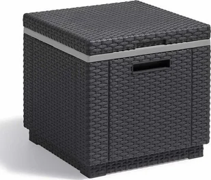42 x 42 x 41 cm (dł. x szer. x wys.)Pojemność: 40 litrówMateriał: tworzywo PP (o wyglądzie rattanu)Odporny na warunki atmosferyczneŁatwy w transporcieMaks. Nośność: 110 kg Allibert 'Ice Cube' 3w1 40l grafitowyDzięki pojemnikowi Ice Cube firmy Allibert możesz mieć pod ręką chłodne napoje i połączyć pojemnik chłodzący, siedzisko i stolik ogrodowy lub kawowy w jednym! Wystarczy wypełnić wnętrze kostkami lodu oraz dowolnymi napojami i przekąskami, aby mieć mnóstwo chłodnych napojów gotowych na następne przyjęcie w ogrodzie lub urodziny. Dzięki prostemu designowi Ice Cube doskonale komponuje się z zestawami wypoczynkowymi.