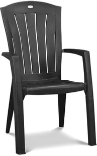 Krzesło Santorini to nowoczesny mebel ogrodowy. Stabilna konstrukcja, wysokie oparcie oraz odpowiednio dopasowane, szerokie podłokietniki zapewnia wysoki komfort wypoczynku. Szeroko rozstawione nogi krzesła uniemożliwiają zapadnięcie w podłoże. Krzesło Santorini wyprodukowano z wysokiej jakości tworzywa sztucznego, dzięki temu jest bardzo lekkie. Pasuje do ogrodu i na taras. Produkt odporny na niekorzystne działanie warunków atmosferycznych w tym promieniowanie UV. Oparcie i siedzisko krzesła stylizowane na drewniane deseczki. Opcja sztaplowania (ułożenia w stos) sprawdza się pod czas transportu oraz w czasie przechowywania po sezonie.